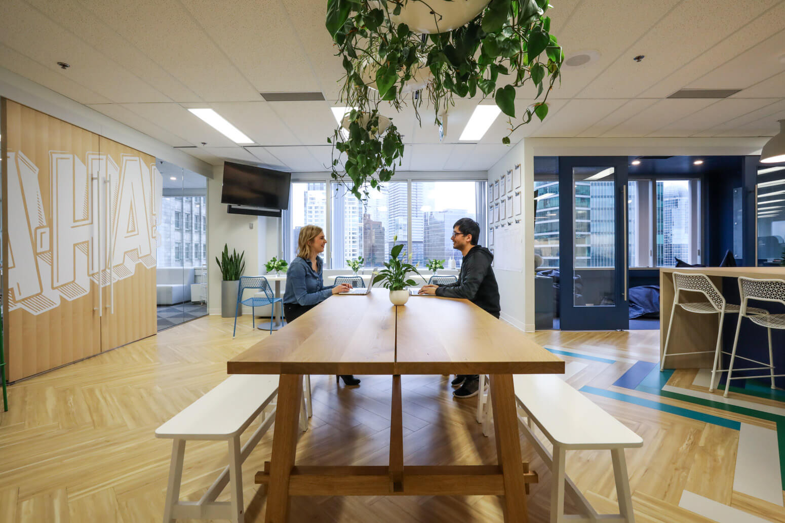“The office environment creates a unique lens for making company decisions,” says Goward. “It leads to decisions that might seem crazy for other companies, like taking the whole team to Las Vegas and Mexico for company retreats. Or devoting nearly half of our office space to shared spaces like a family-style kitchen, breakout rooms, and a beanbag chair ‘solutions’ room.”
